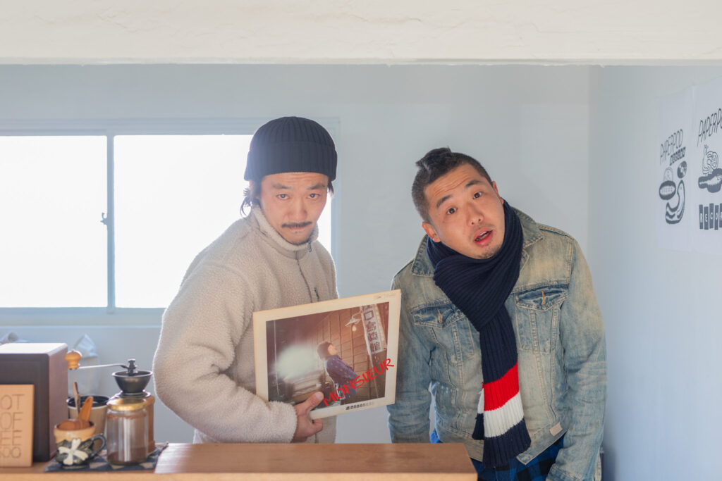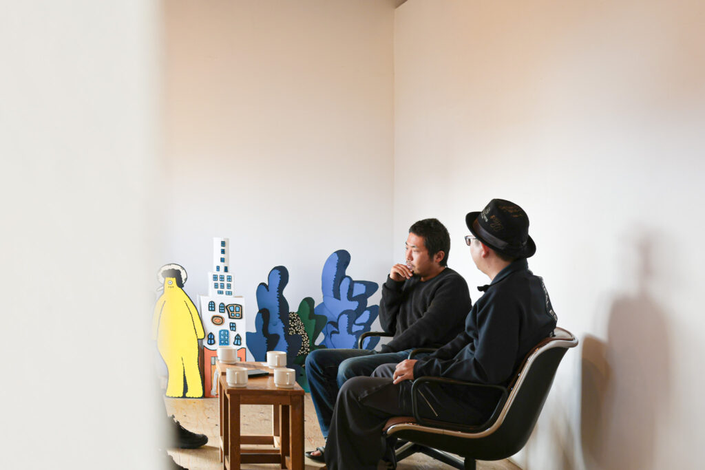 フジサワさんの小学生時代からの友人だという水元さん。高校卒業を機に、別々の県に進んだことをきっかけに関係が希薄になります。「こっち(西都)に戻るまでは連絡すら取ってなかったですね」とフジサワさんは当時を振り返ります。再び密に連絡を取り合うようになったのは、フジサワさんが西都市に戻って来てからのこと。このとき、フジサワさんはまだ美術家としては活動してませんでした。