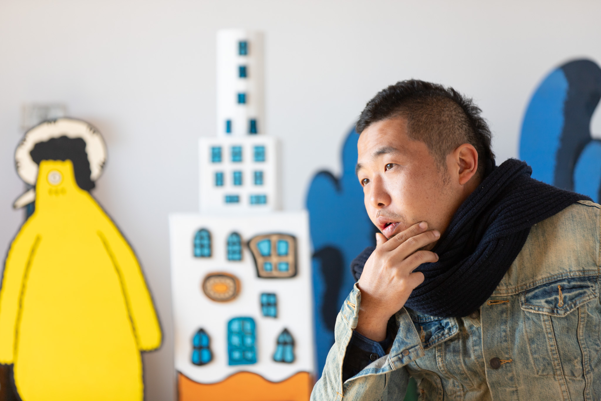そんなとき、救いの手を差し伸べてくれたのが、今でもお世話になっている未来未完成美術館ニュージアムの大野さんです。制作を辞めた後も大野さんと交流を続け、制作に対する悩みや想いを打ち明けてきました。そんなある日、大野さんから「そんなグダグダ言うんだったら、展示したら」と発破をかけられます。「僕自身が面白いかどうかは別として、大野さんが面白いと言ってくれている。じゃあそれを信じよう」と、フジサワさんは奮起します。結果、ニュージアムのこけら落とし個展という大役をフジサワさんが任されることになるのです。「今できる精一杯のことをやってみよう」、そう誓って再度フジサワさんは制作を再開。そこから今に至るまで、美術家としての活動を続けています。